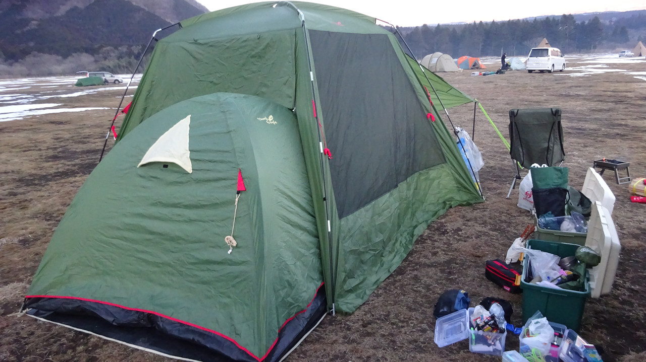 よく考えると、あれってテント+タープの役割を果たしてるんですよねー。