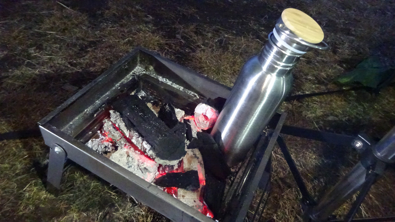 直火で暖めればお湯も沸かせるし、寝るときにタオルに巻いて湯たんぽにできるという優れもの。