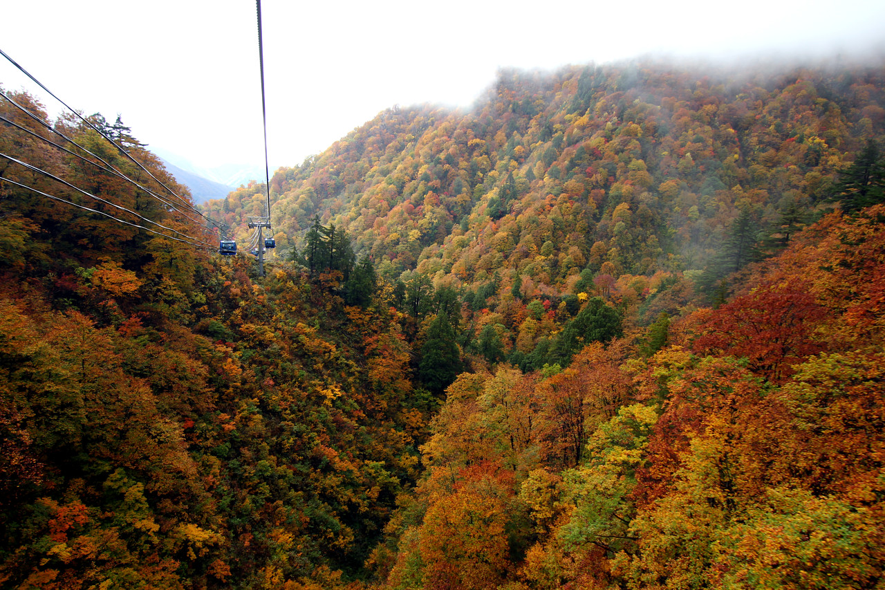 休憩所でお饅頭とかきのこ汁をいただいて、ゴンドラを降りちゃいます。