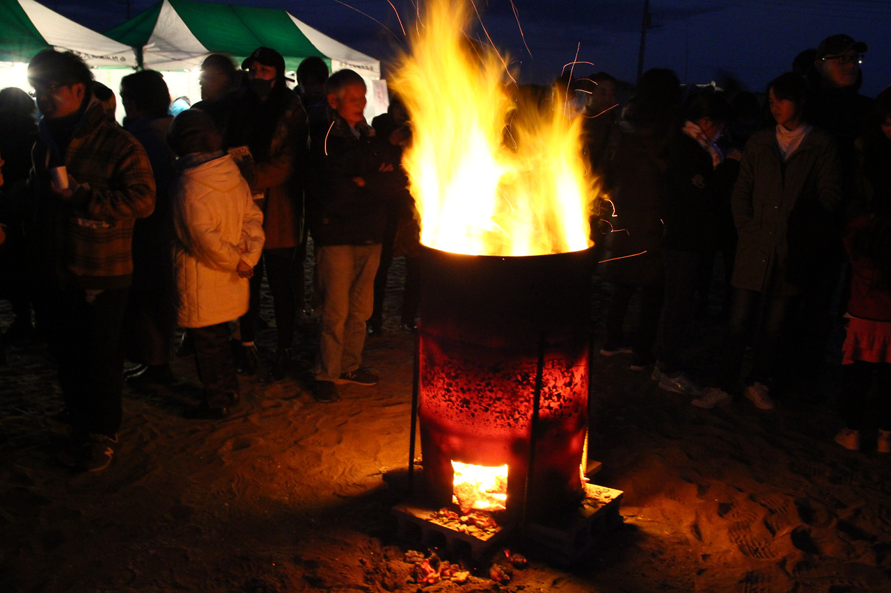 焚き木を焚いて、お茶と紅白餅を無料で配ってくれていました。