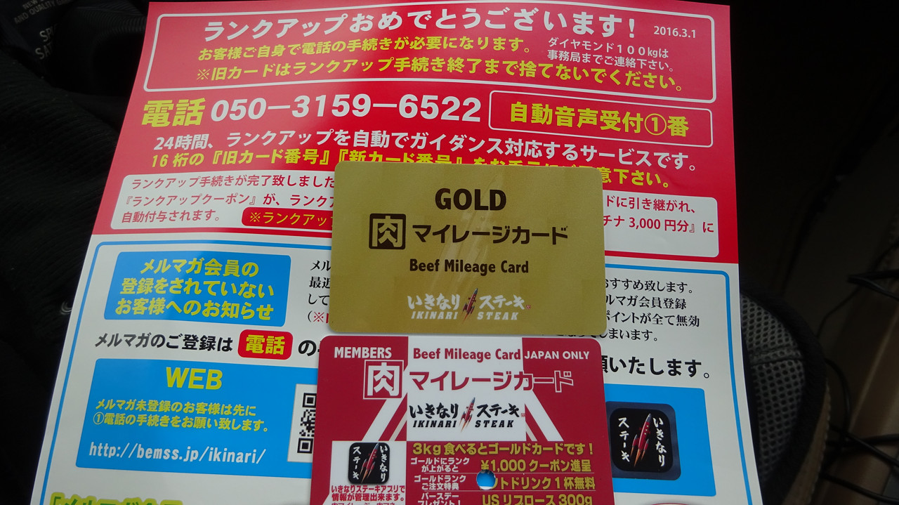 今回で肉マイレージカードがGOLDにランクアップしました。