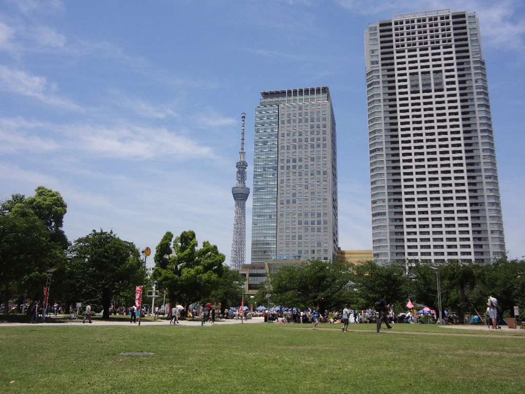 錦糸公園からちょっとだけ見えるスカイツリー。
