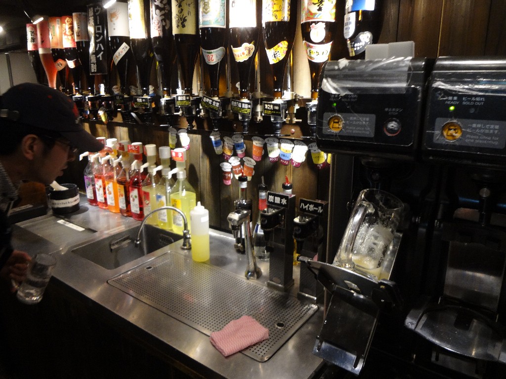 右手前がビールサーバー、あとは焼酎とか果実酒とか。