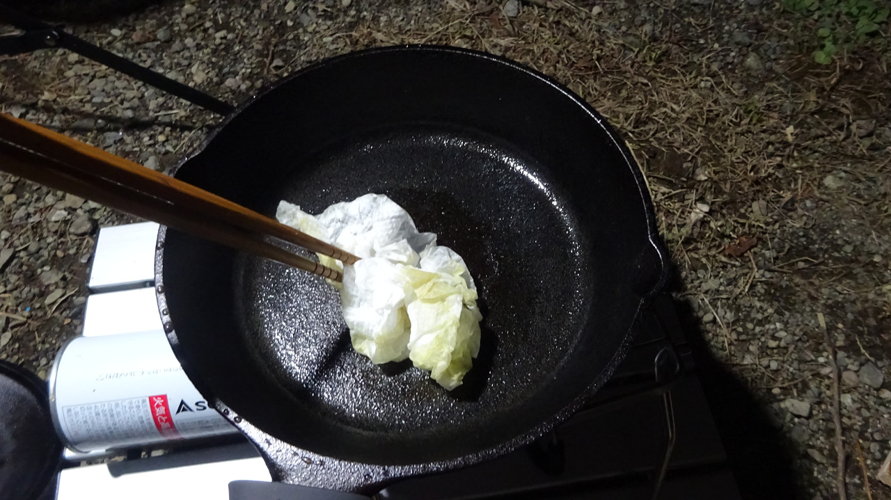 冷めたら水洗いし、オリーブオイルを塗りたくります。