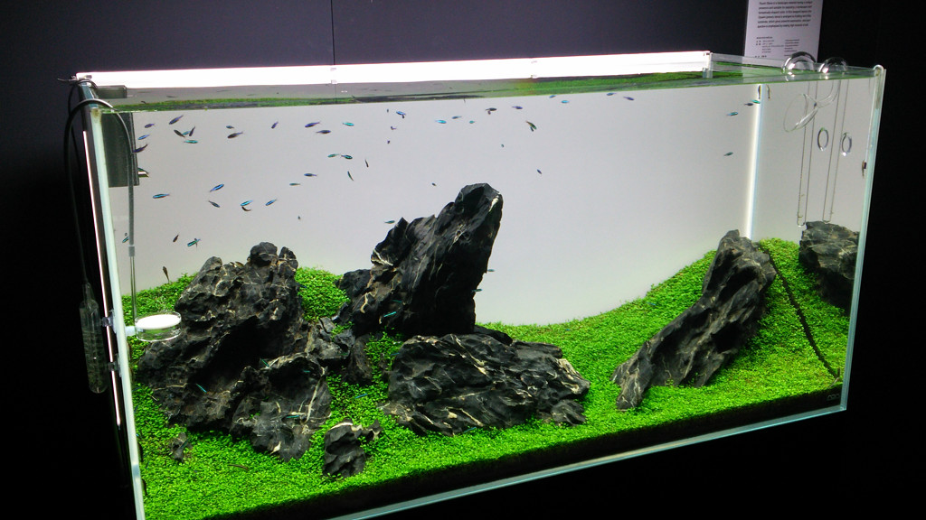 その天野氏が撮影した写真と、ADAがレイアウトした水槽が今回展示されてました。