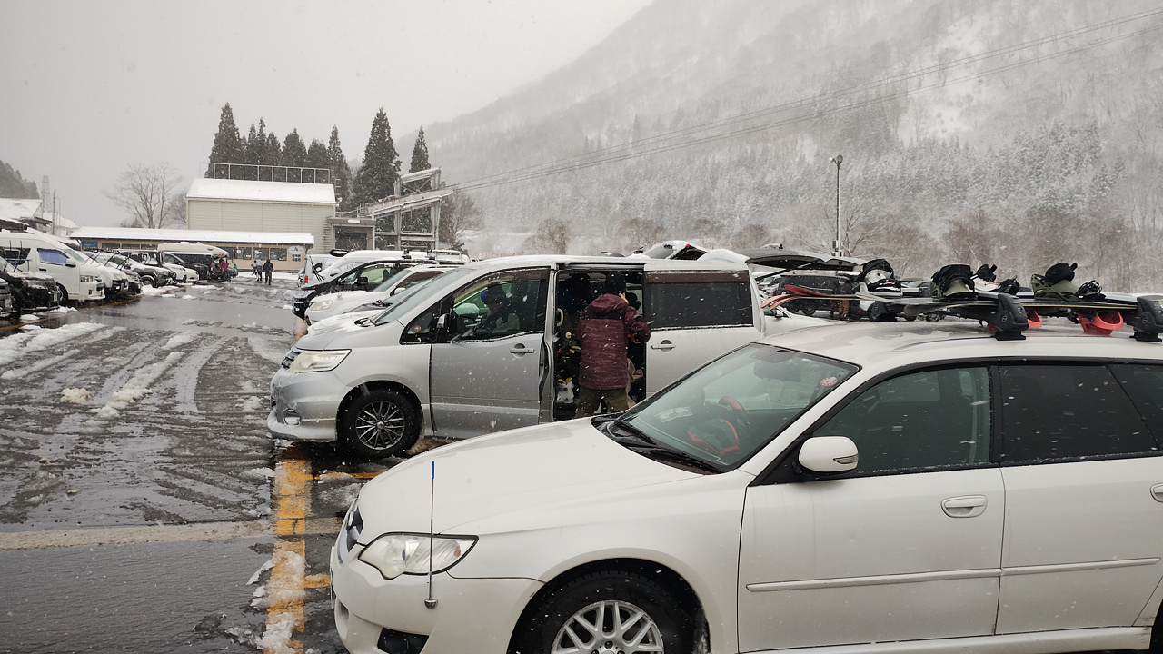 そして駐車場の地面は凍結防止の水?お湯?がずっと流れてました。