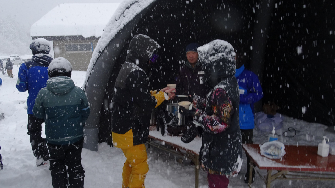 寒いからか、200人限定?で豚汁の配付サービスがありました。