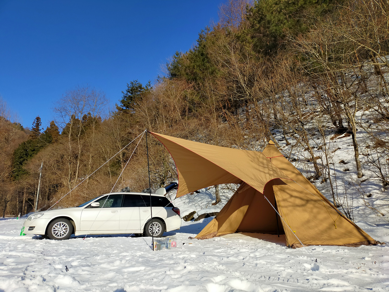 どうせ薪ストーブ使うときは冬だし、ワンポールテントの出番も冬だしね。