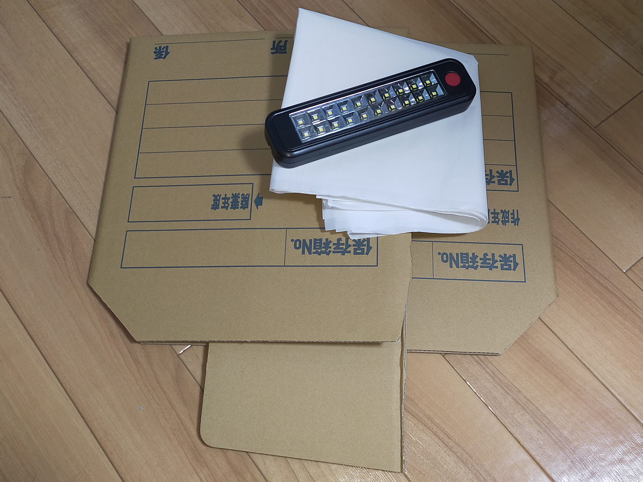 と、ダイソーで買った白い布と、ホームセンターで買ったライト。