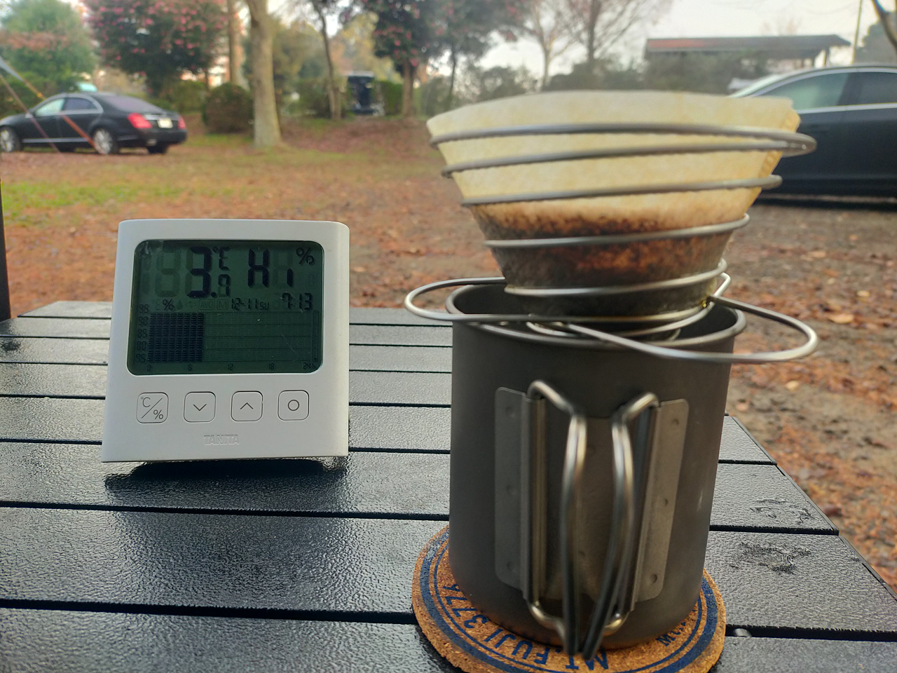 ・・・朝露に濡れたテントとかを干さなきゃ。