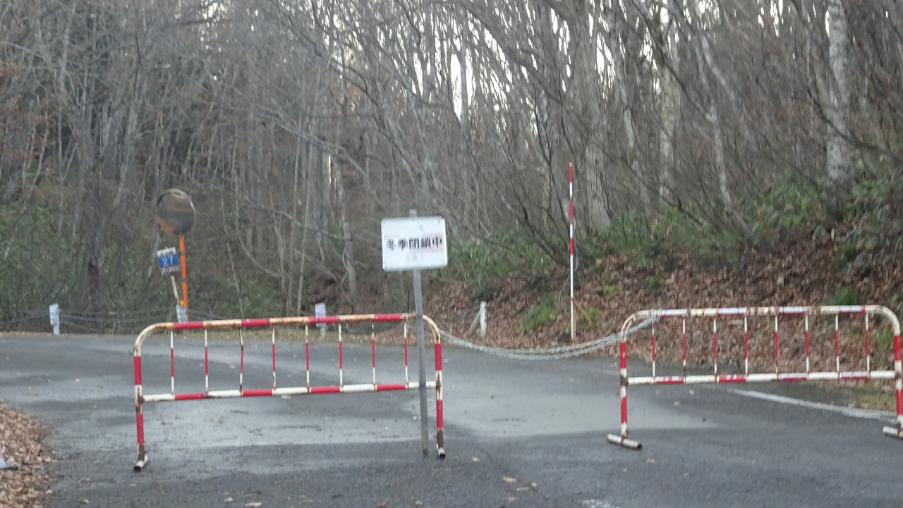 たんばら高原の手前で道路が冬季閉鎖!Σ(´Д`;)