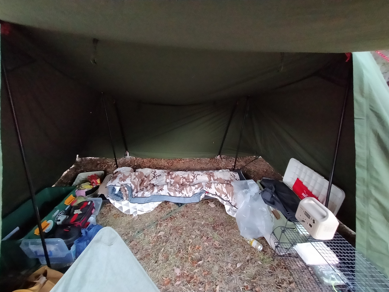 さらに実はテントの張り方を少しだけミスっていて、テントのファスナーが完全には閉められていません。