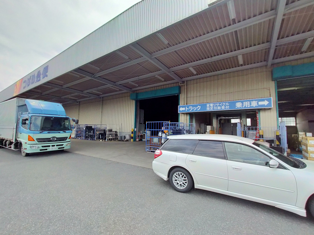車を中に停めたら係の人がやってきて、用紙とテレビを引き取ってくれました。
