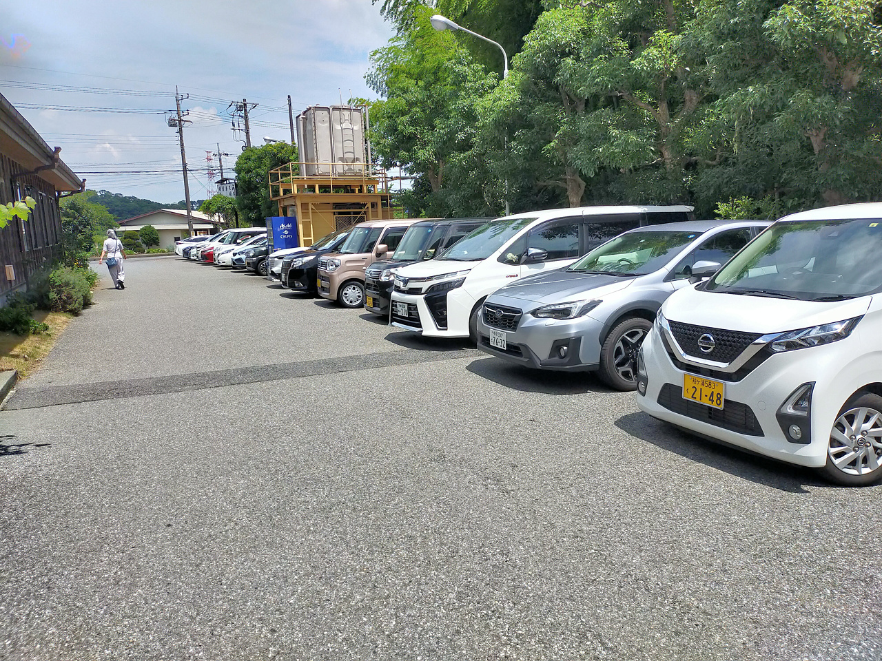 工場は車が出たり入ったり。