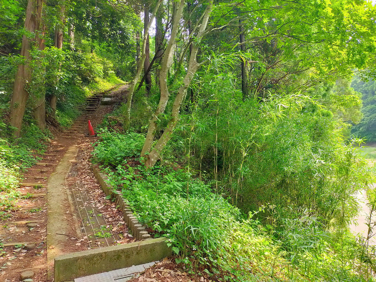 この辺はうっそうとしていて、山道と言っても通用する感じ。