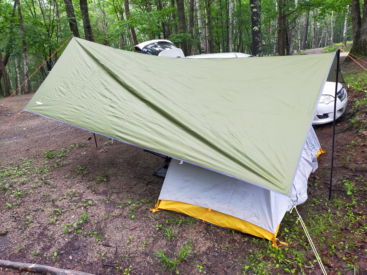 タープ使うと、広さ的にギリギリですね。