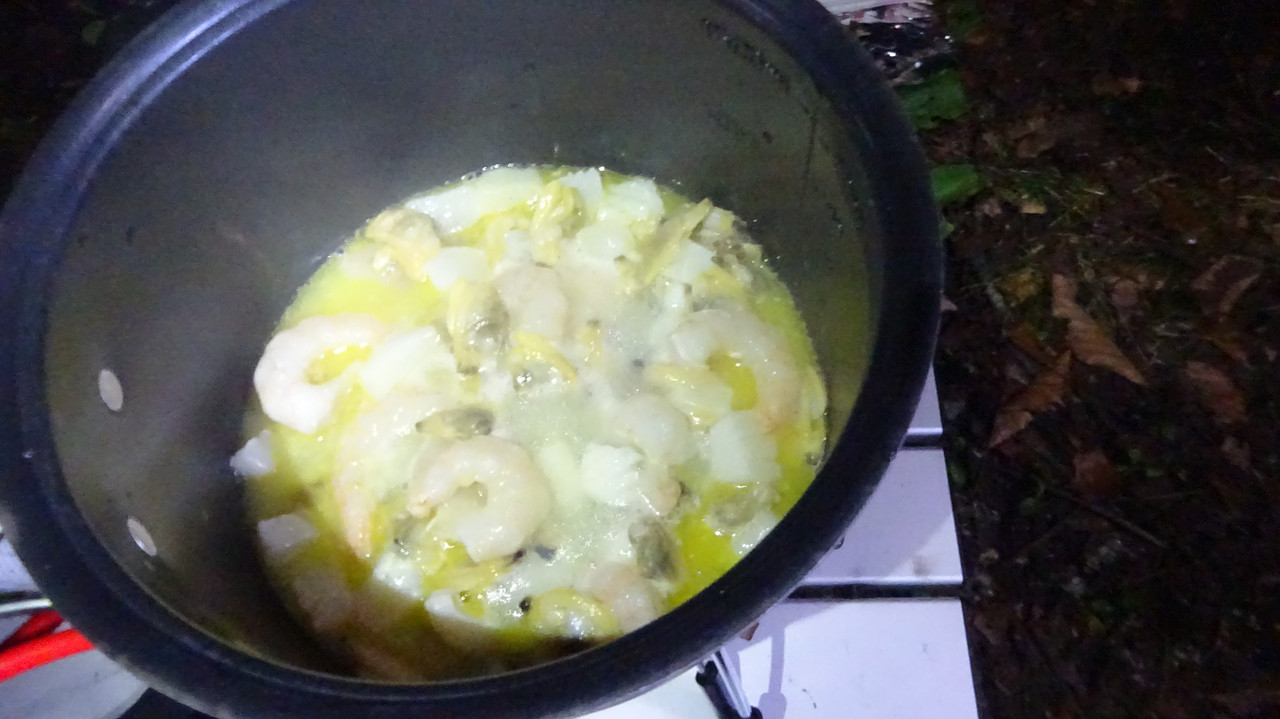 シーフードミックスの水分もあるけど、普通に200ccくらい入れてみました。
