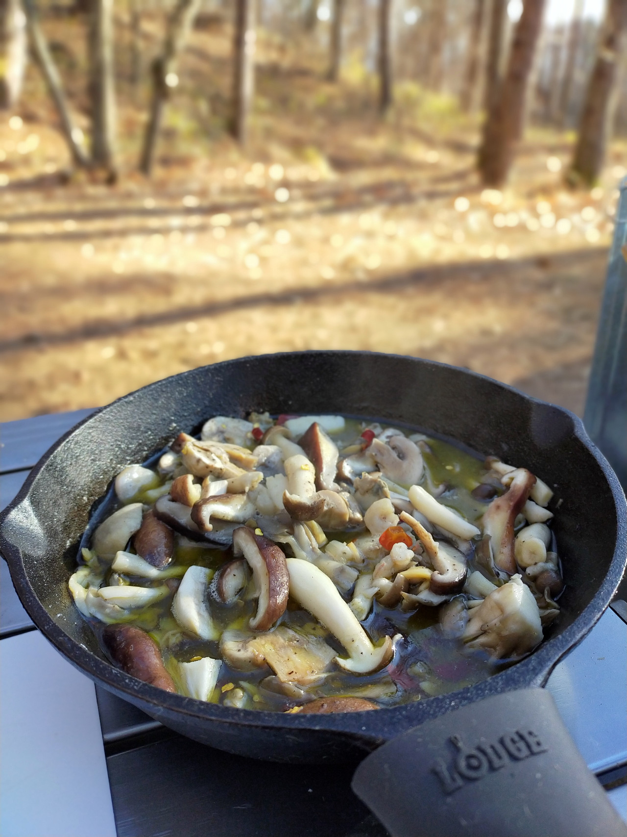 オリーブオイルと塩胡椒と鷹の爪でぐつぐつ。
