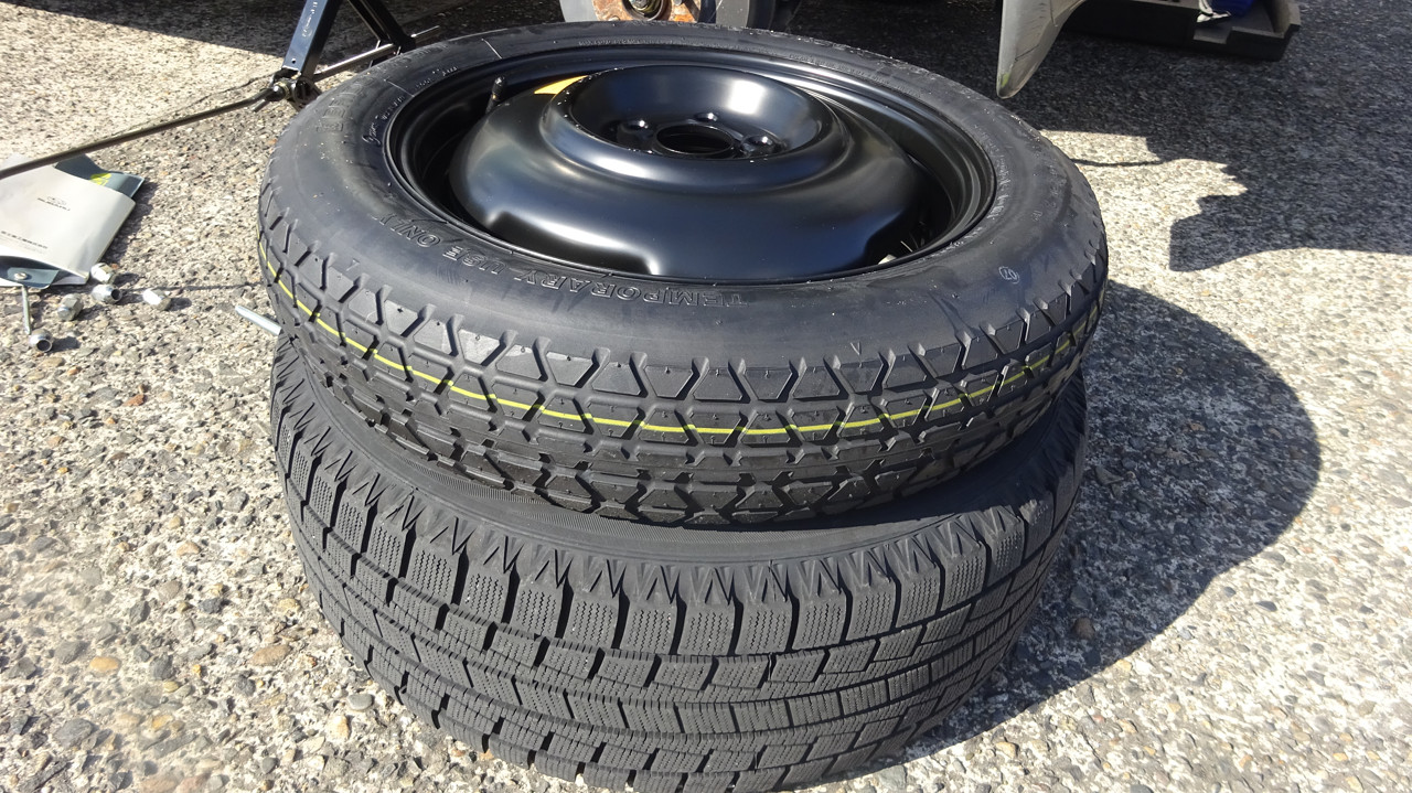 スペアタイヤを取り出して、とりあえず大きさ比較。