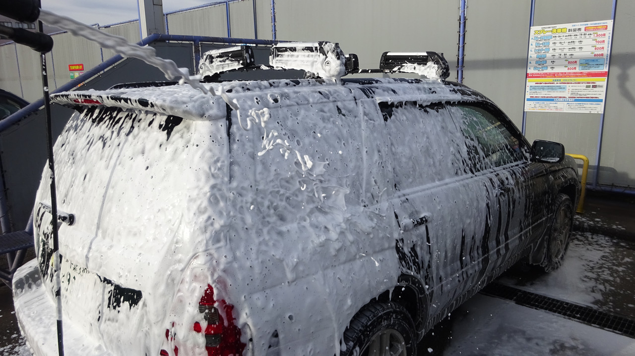 いつもは洗車場で付けてたんだけど、引っ越してから駐車場にちょっとスペースの余裕が出来たので駐車場で作業。