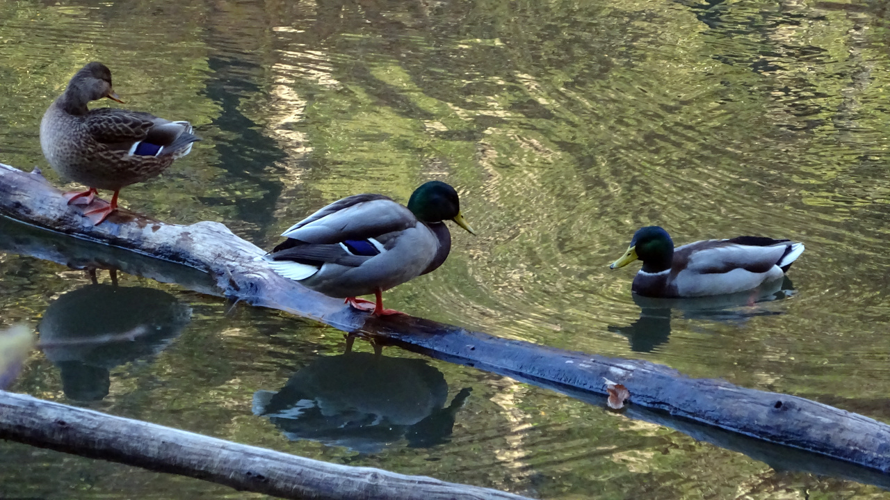 カワセミはいませんでしたがカモさんの団体が。