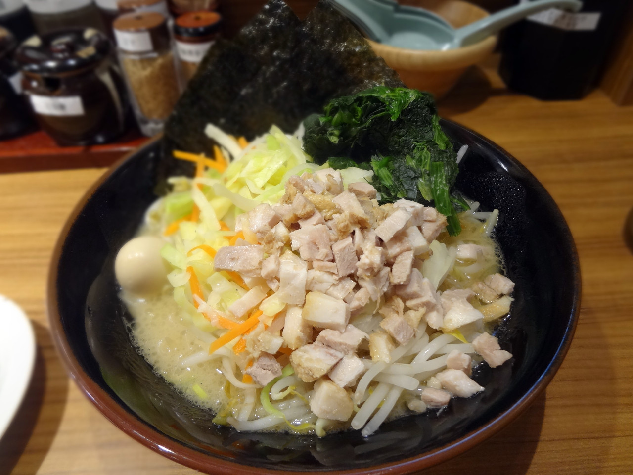 ご飯は最近できた横浜家系ラーメンで、麺無しラーメン。