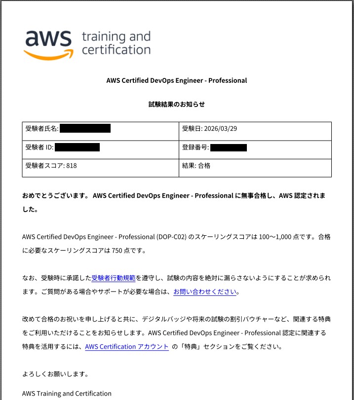 ・AWS Certified Solutions Architect - Professional : 2023/4/22合格