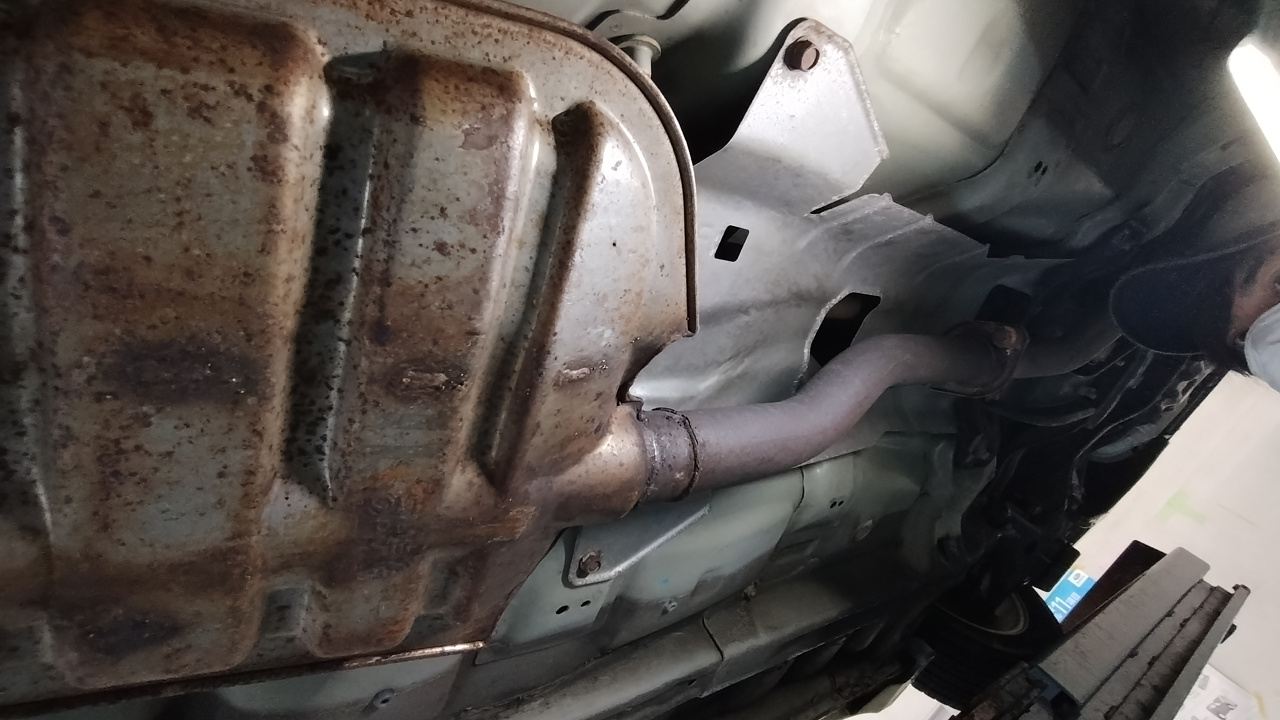 車の底のマフラーを支えていた部分の溶接が剥がれて