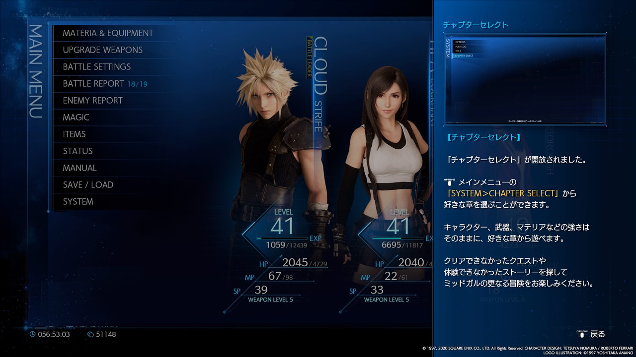 ファイナルファンタジー7リメイク、1周目クリア。大体57時間。
