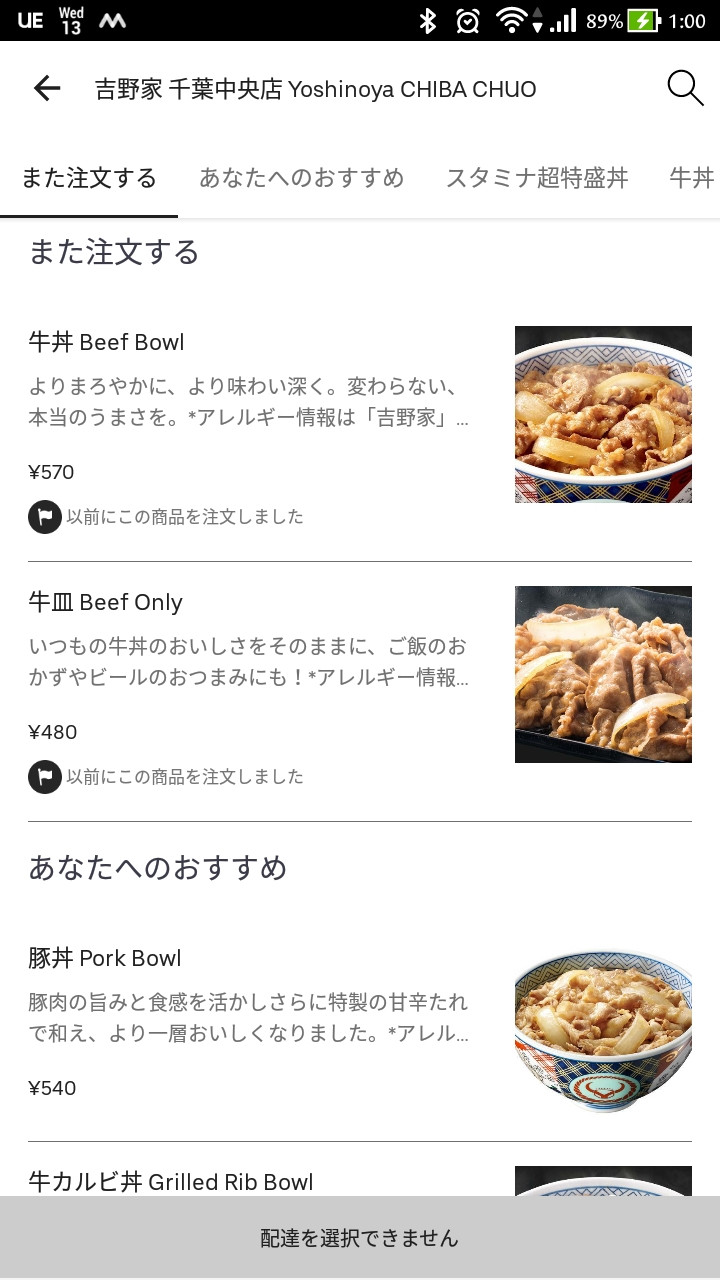 牛丼570円+牛皿480円にサービス料150円+配送手数料150円がついて