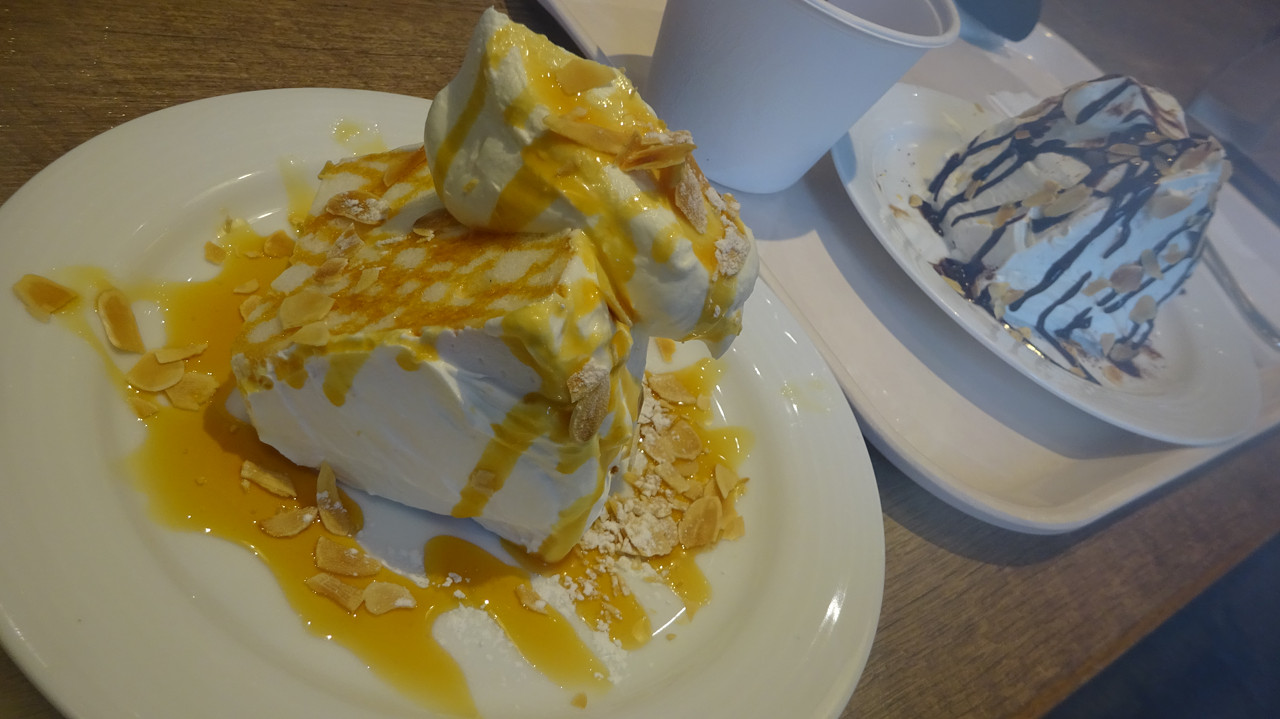 お昼はカツカレー、撤収間際の休憩でケーキをいただきました。