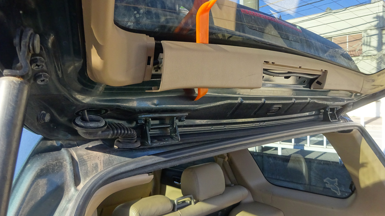 で、後ろのドアと本体を繋ぐ蛇腹のカバーにケーブルを通して・・・