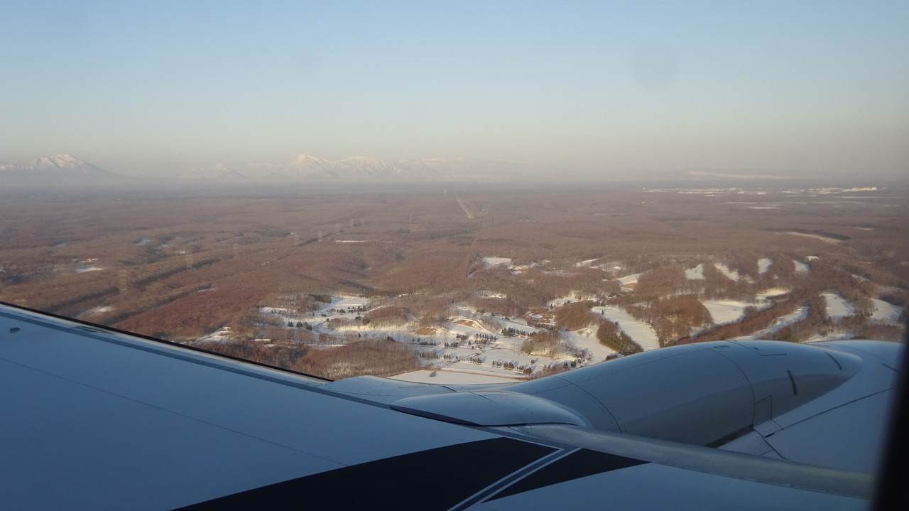 途中でサービスのコーヒーをいただいてまったりしていると、1時間ちょっとで北海道です。