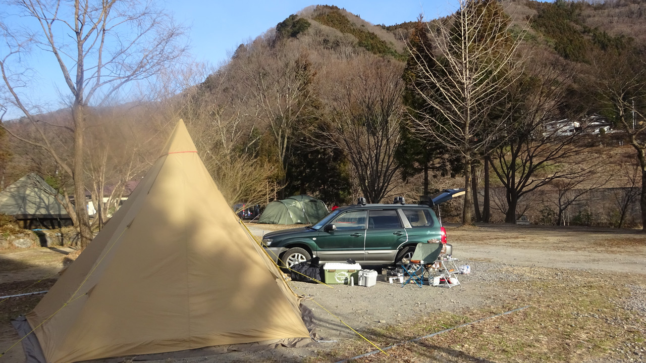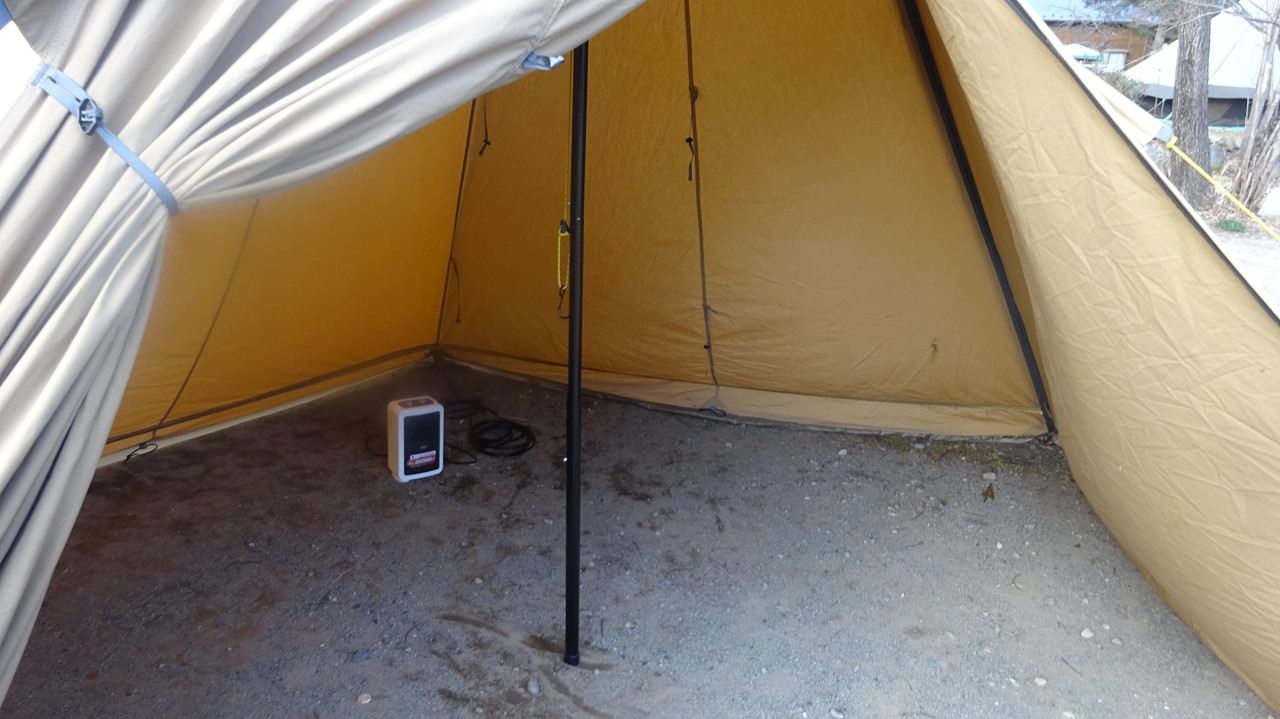 電源付きサイトなので、例によってセラミックファンヒーターをセット。