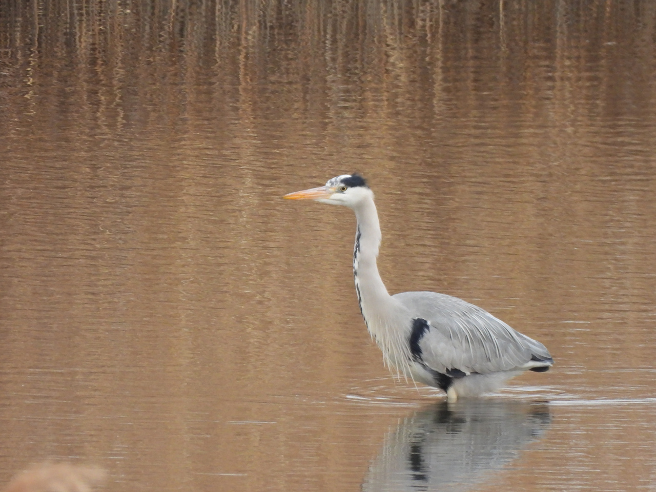 こういう場所ではよく見るアオサギさん。