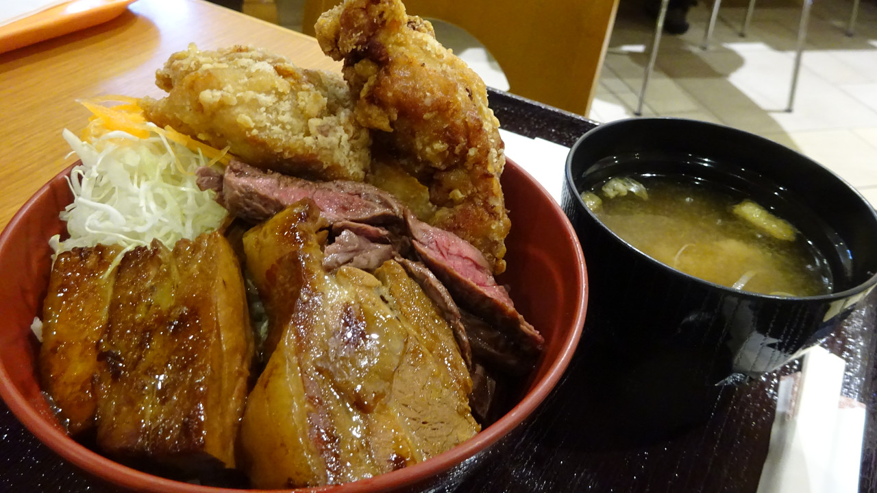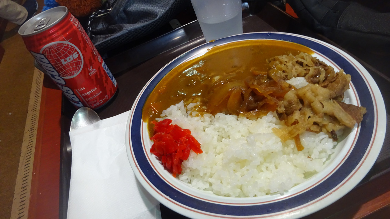 山腹のヒュッテで、牛丼カレー。ついでに大盛。
