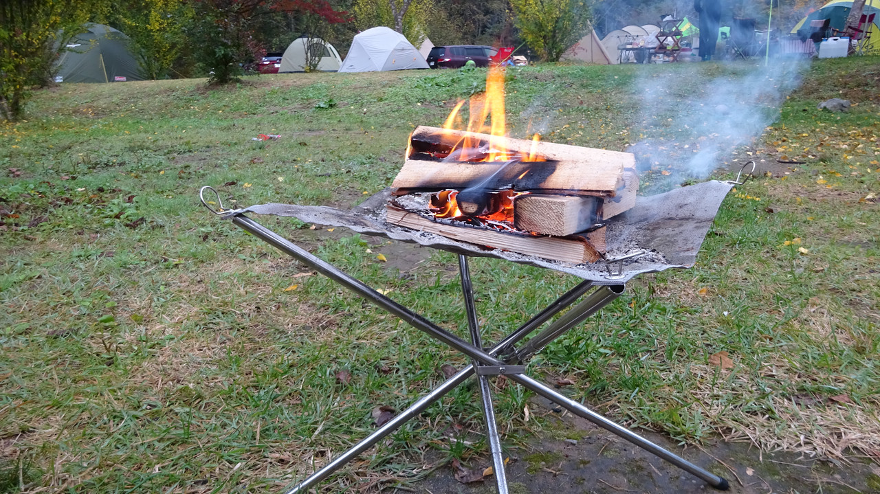 そうそう、そこそこ寒いので焚き火もしてます。