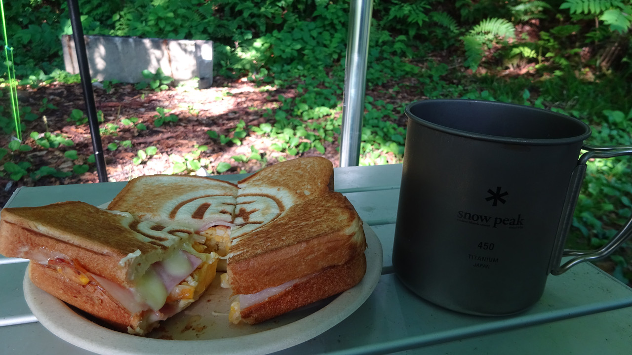 ホットサンド&コーヒーに、今回はこの前買ったアルコールストーブを使ってみました。