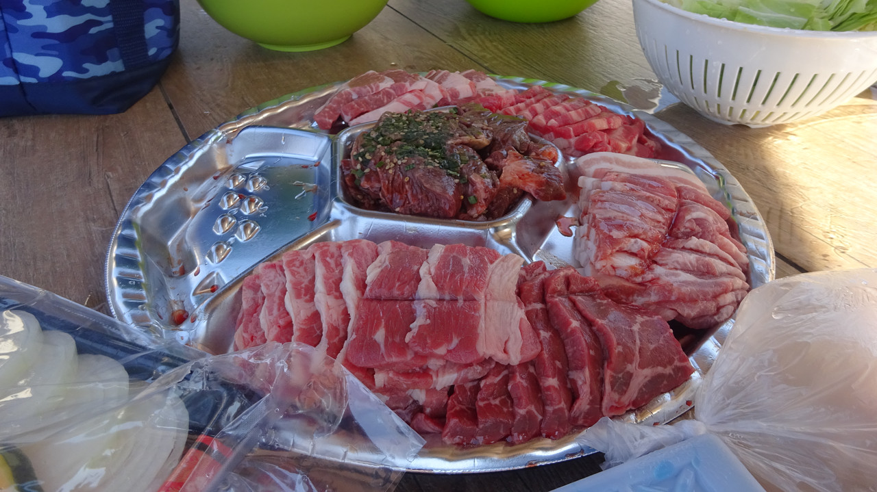 今回も道中で食材を買いましたが、お肉だけは午前中にソロで購入しておきました。