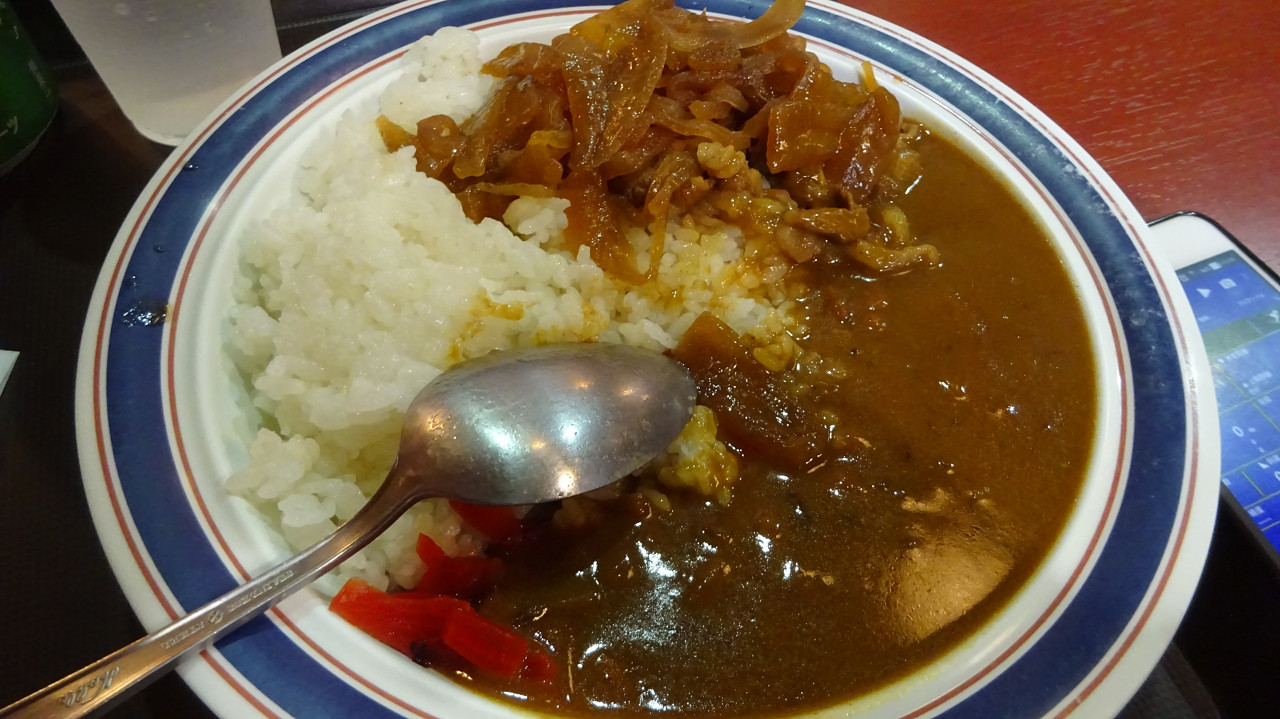 お昼は中腹のヒュッテさんで、牛丼カレー。