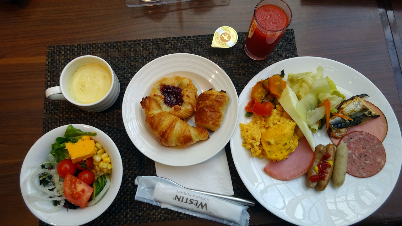 朝ごはん、昨晩と同じレストランでビュッフェ。