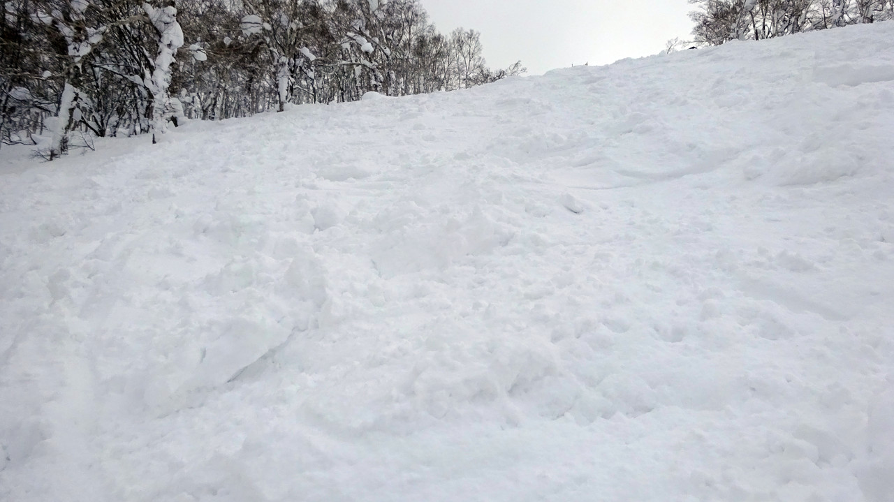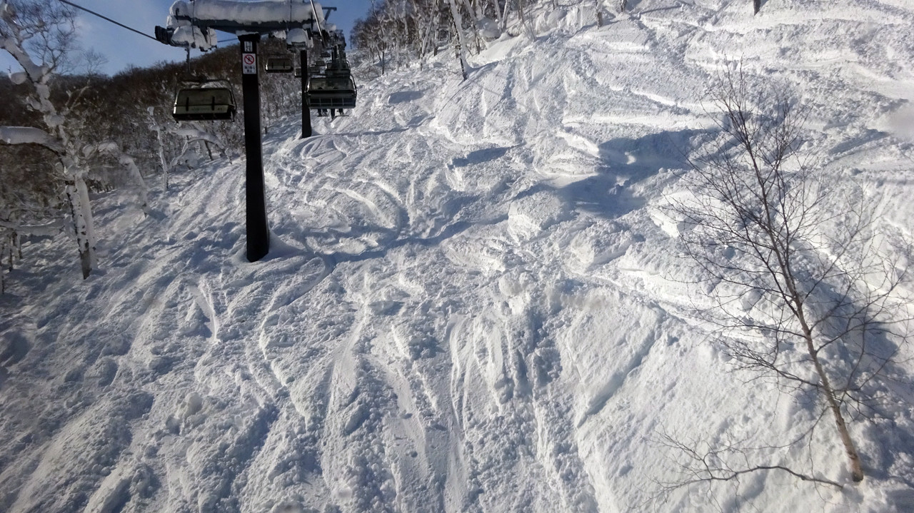 傾斜は中級者コース程度ですがずっと非圧雪。