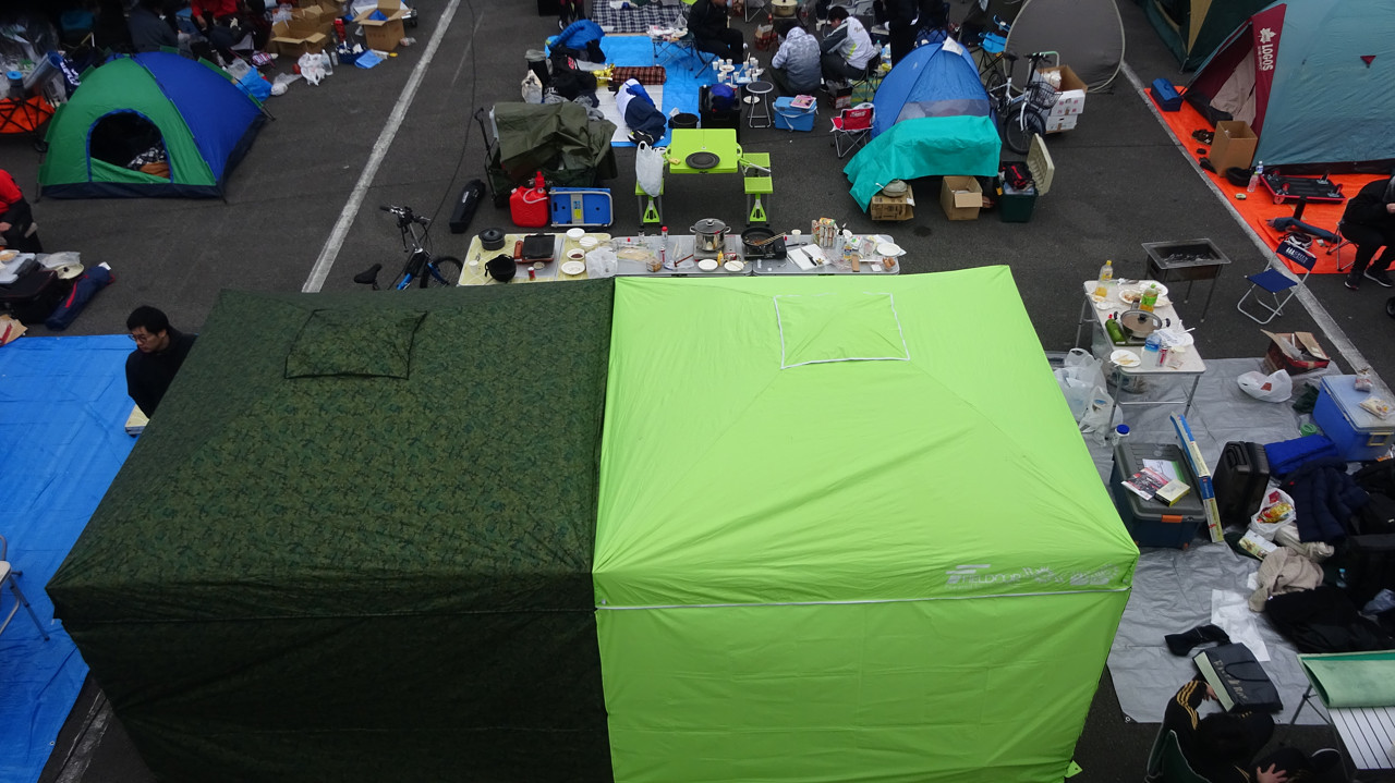 居残り組は駐車場で机と椅子を出して待機。自分はコッチでした。