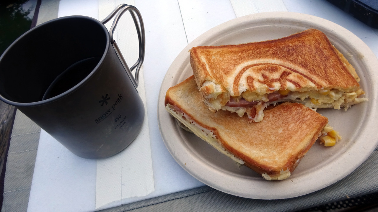 これをホットサンドしつつ、ちょーっと陣取る場所を移動。
