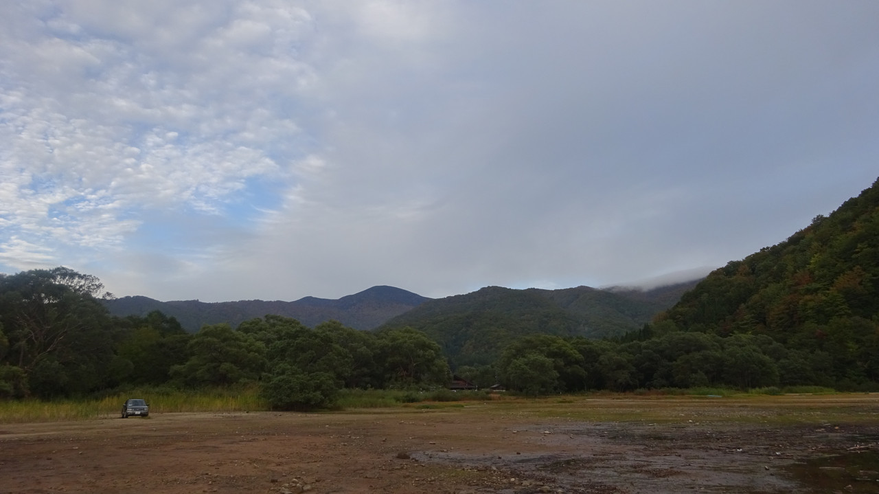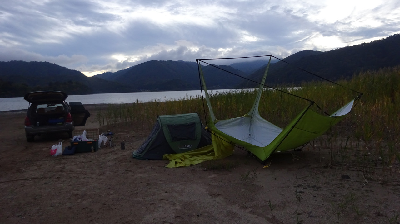 しばらくうろつきまわり、↑で車が置いてある位置に設営開始。