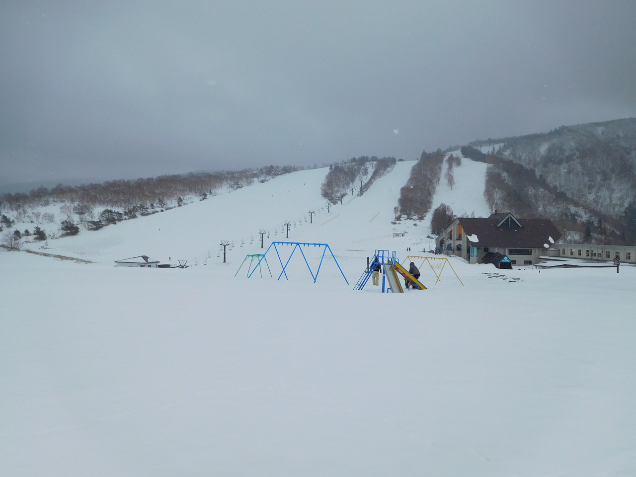 危なくない程度に急いで、滑り込みで最後のスキー場に。