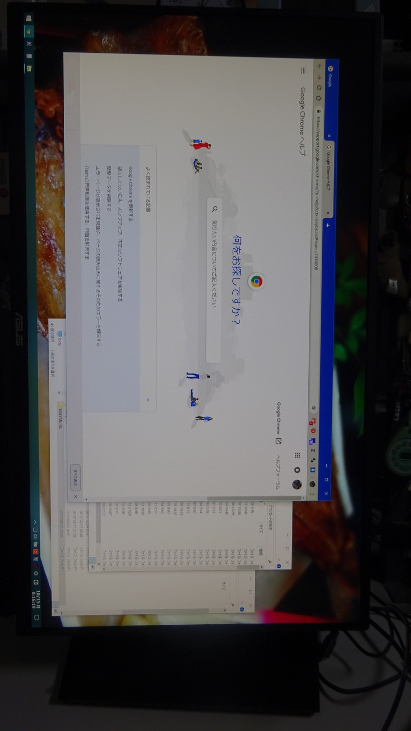 ・・・でも縦に回すのは比較的簡単だけど、Windows側の設定も縦に変えないと縦表示になりません。そりゃそうか。