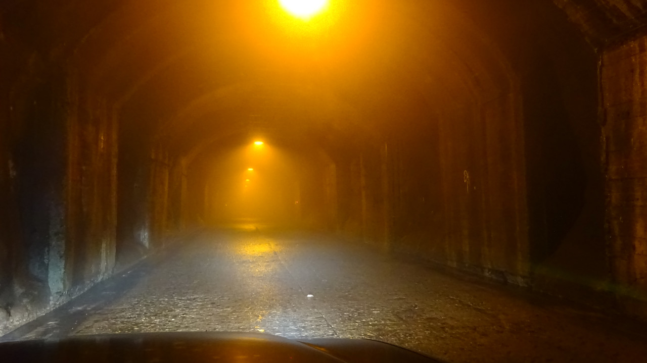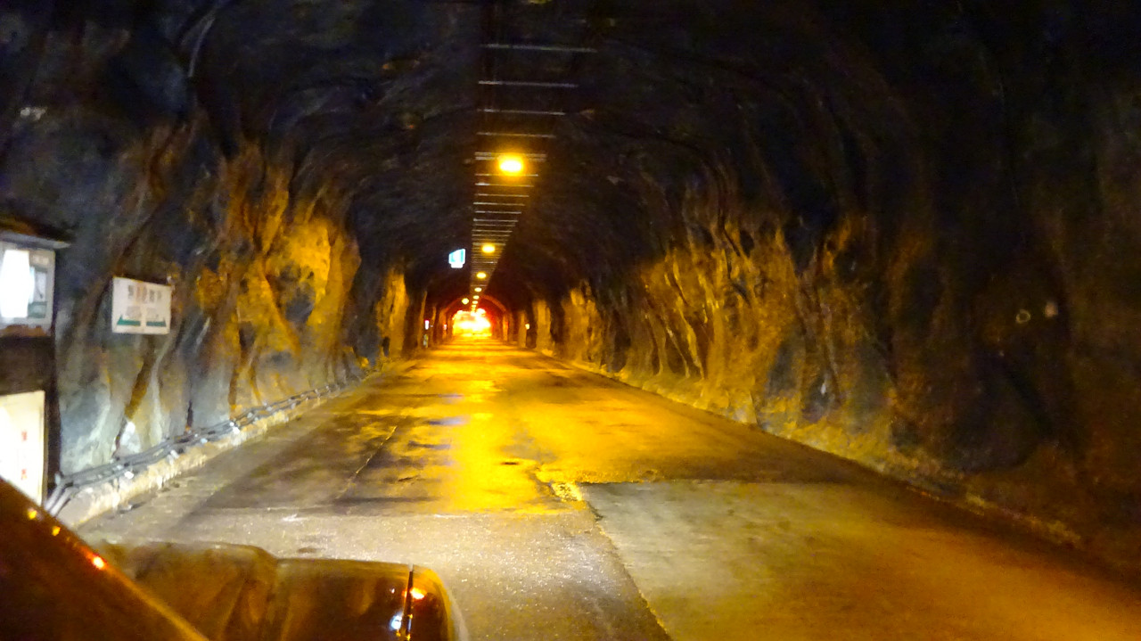 トンネル内の交差点を右折してー