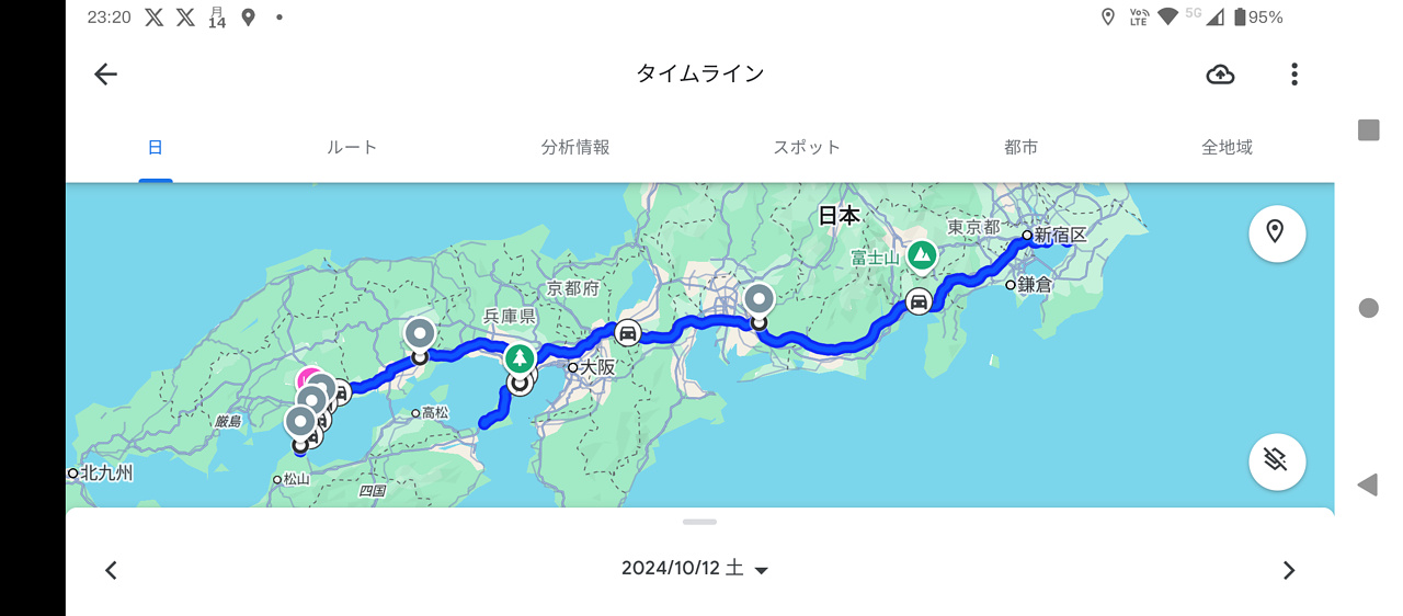 最終日は広島スタートで2回ほど南下し、あとは千葉まで直行。