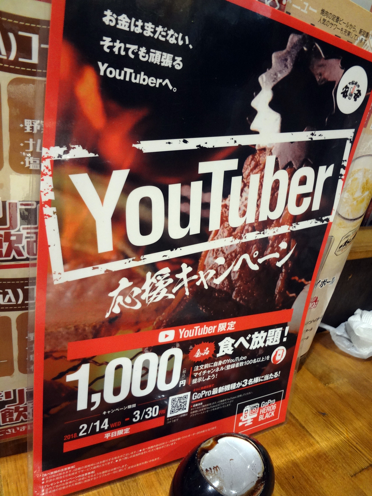 ユーチューバー応援キャンペーンと称した焼肉食べ放題に参加。